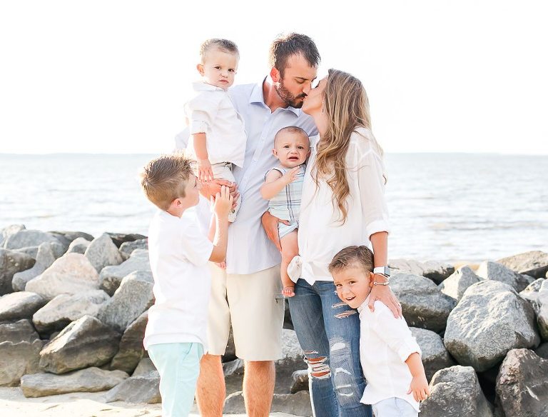 Last week I got the special treat to work with this amazing bunch for their family photo session at the gorgeous Fort Boykin beach in Smithfield, VA. 🙂 I mean look at this family! They are just so beautiful inside and out. Kristy is an amazing woman who is the worship leader at Elevate Church and she is surrounded by 5 handsome fellas! I love being a family photographer and getting to capture the personalities of awesome kids just like the Bryant boys! They call themselves #thebryantsixpack and although their hands may be full, you can tell their hearts are bursting with love and pride.