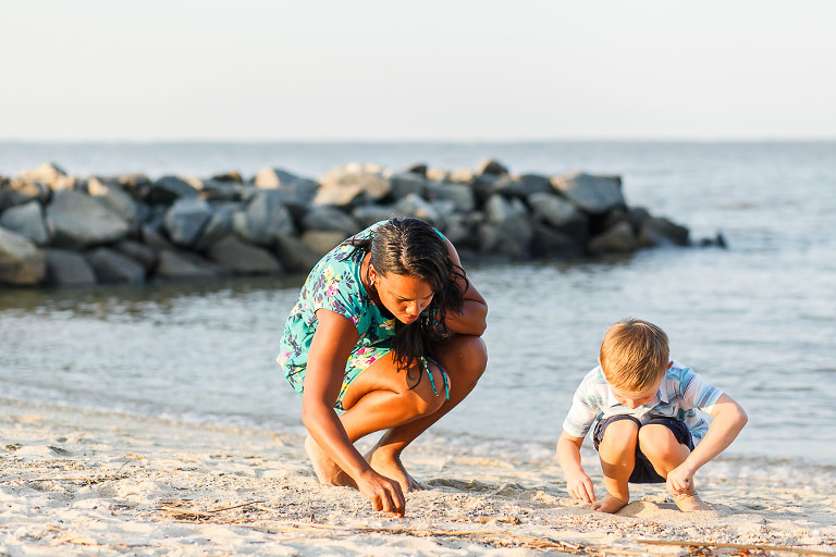I love having past clients return and seeing how much their little ones have grown since our last session together. I’ve been photographing the Zwick family since their little guy was just a baby. Now little Owen is a sweet, handsome young boy. He had a great time exploring Fort Boykin Beach in Smithfield during their photo session and loved checking out all the seashells. His daddy even taught him how to skip some rocks on the water.