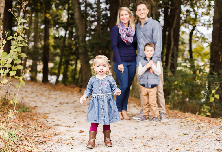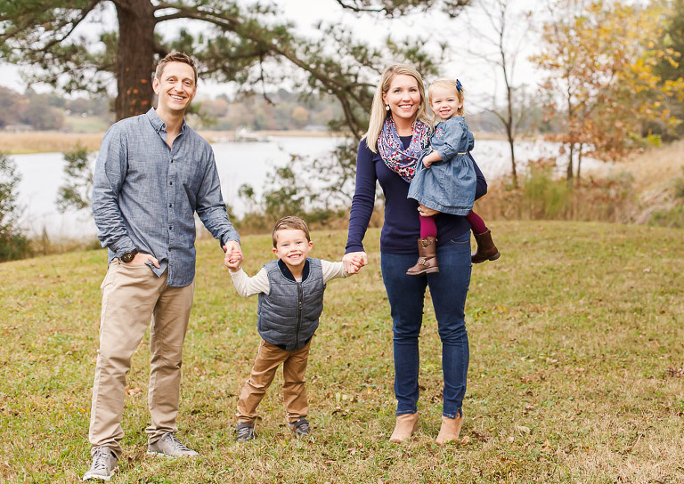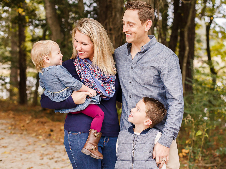 Fall is a wonderful time for family photos. The light is gorgeous and the leaves are so full of color. But the weather can be so unpredictable here in Virginia. One day it can be 70 degrees and sunny, the next it’s 40 degrees and rainy. Thankfully, we were finally able to find a day for the Glass family to have their photo session after having to reschedule twice due to unfavorable weather. It was even sprinkling a little bit that morning as we arrived at Windsor Castle Park in Smithfield. But thankfully it moved off and we were able to have some cool, dry weather for their family photos.