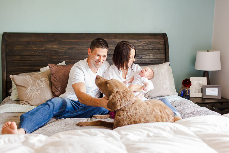 When Brandy and Chris said they preferred to have a lifestyle session at their home in Norfolk I was so excited. I just love the natural emotions we captured as they are clearly head-over-heels in love with their new baby girl. The Talkenson’s live in a beautiful home, full of charm, in Norfolk. Little Harper has the cutest nursery, pink and gray are two of my favorite color combinations. Brandy looks so comfortable as a mom and you can tell her and Chris already make a great parent team. Harper definitely has her daddy wrapped around her little finger already. Their sweet fur baby even got in some of the photos. You can tell she is still adjusting to sharing her parents with the new baby. She was such a ham, totally loving all the attention.